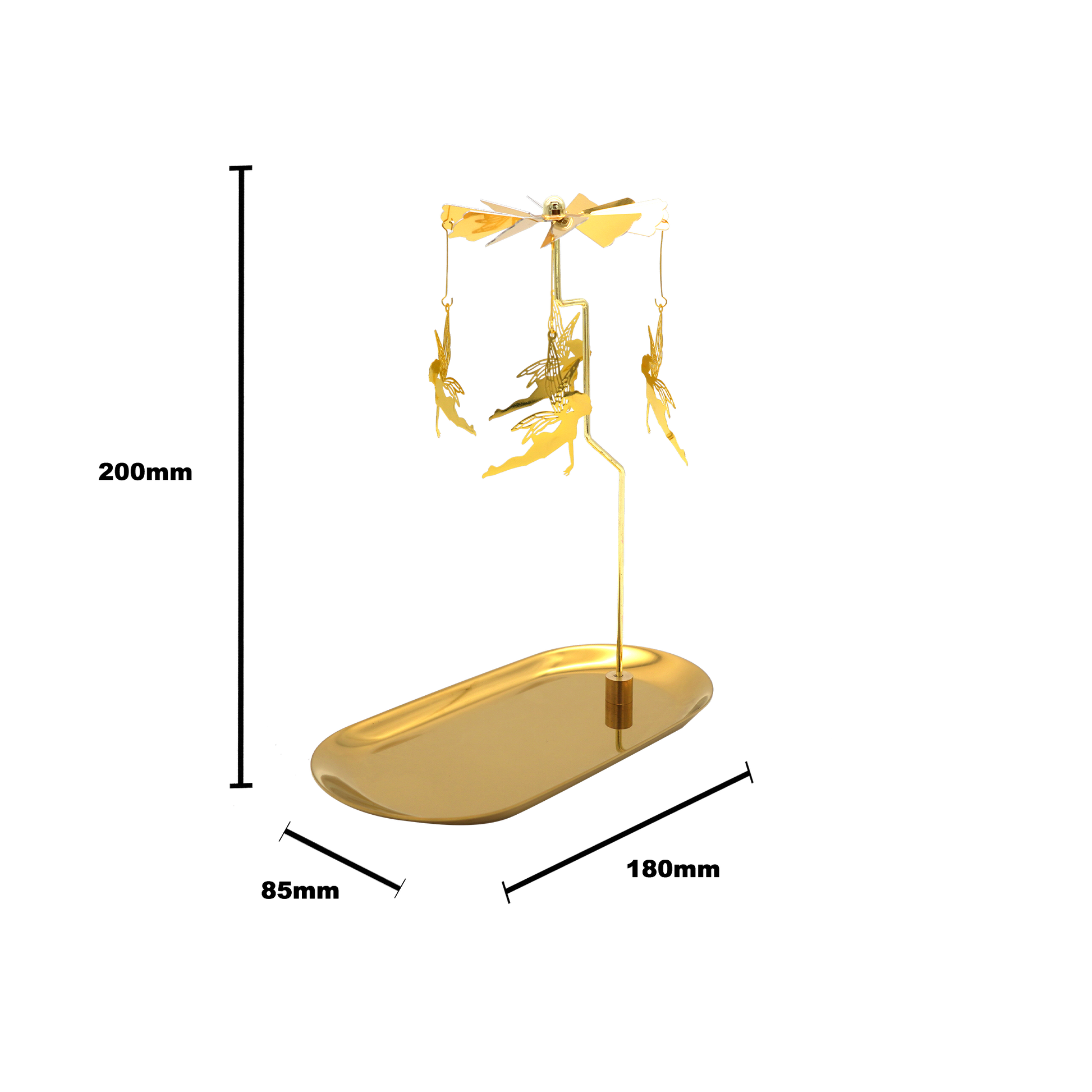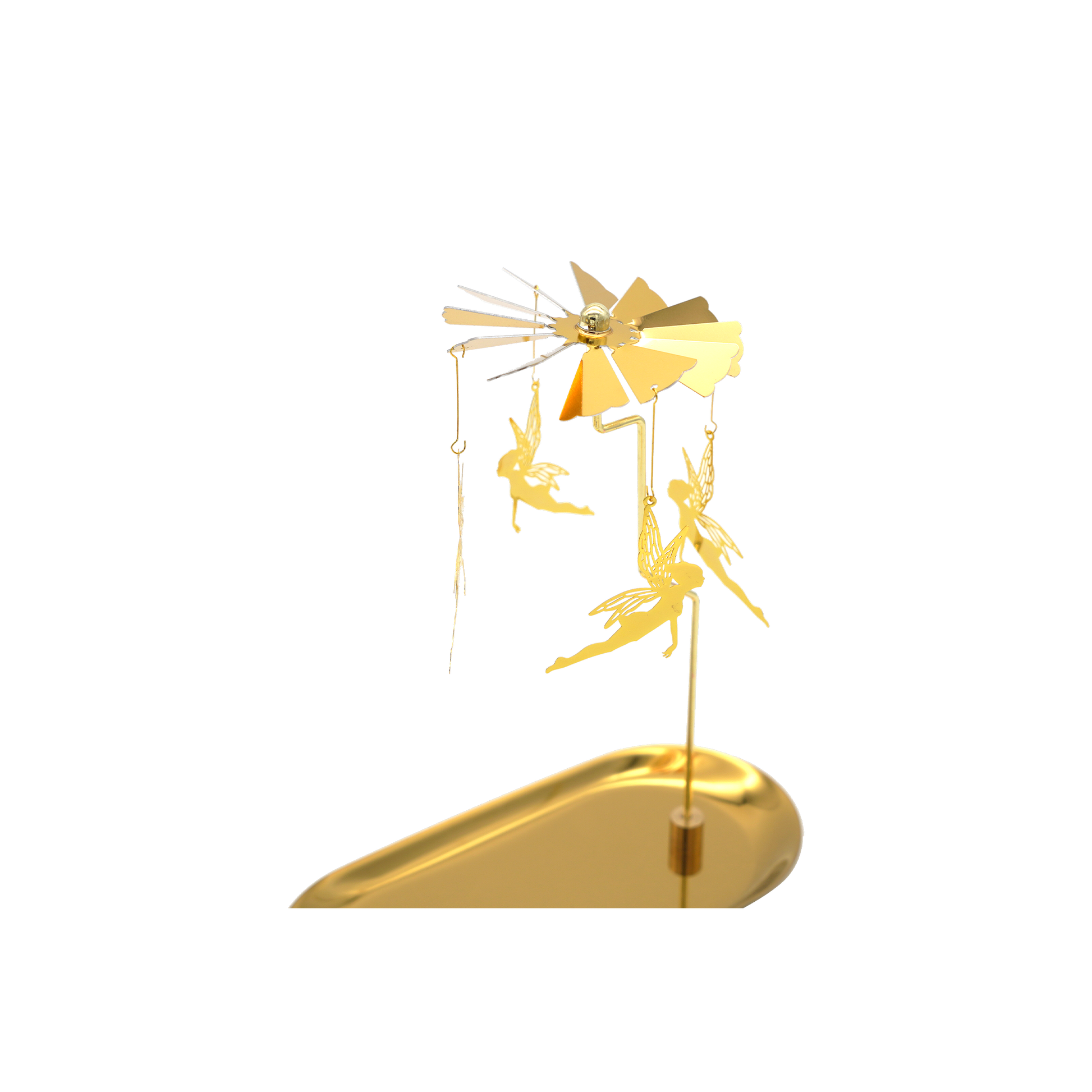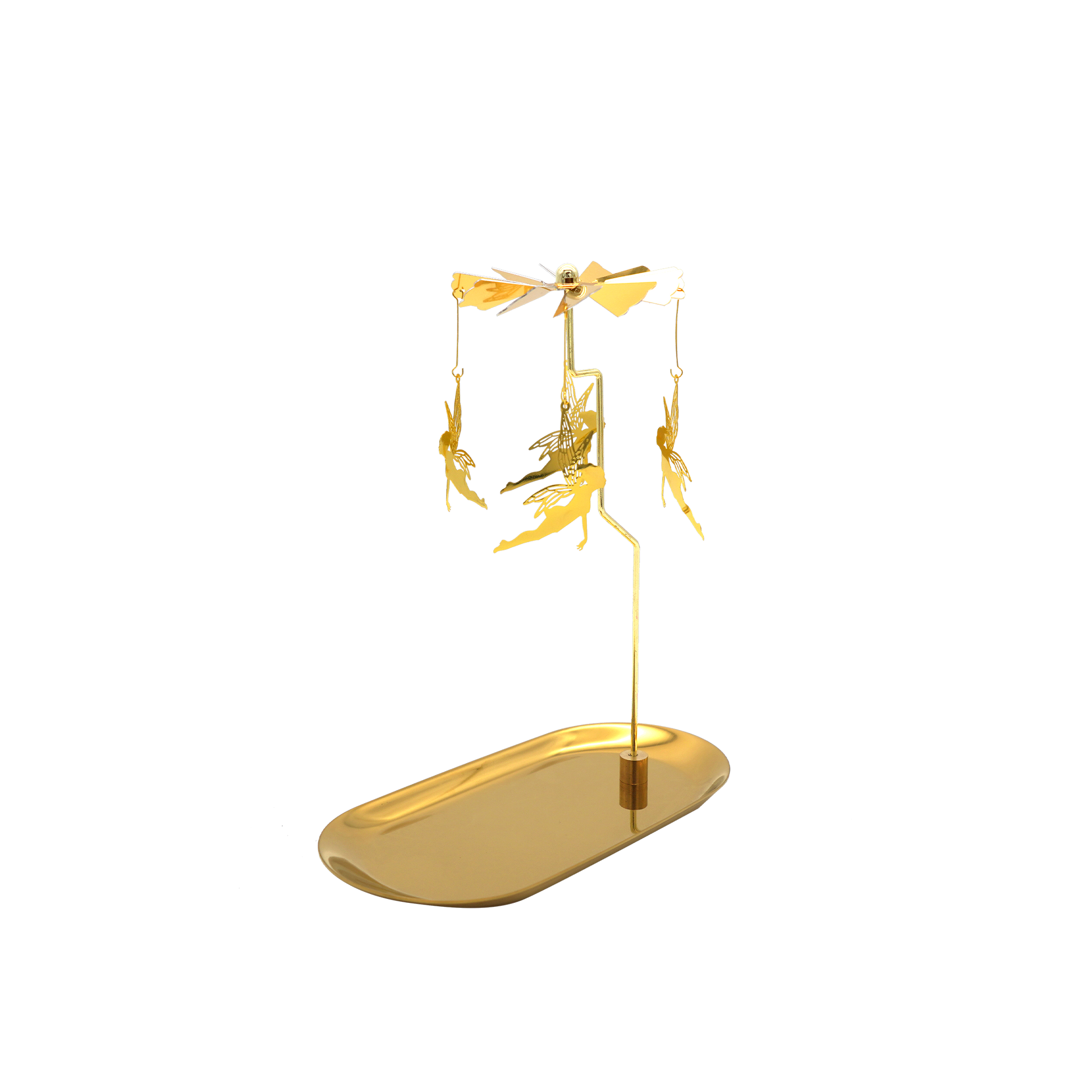 Crafted from gold color finished stainless steel, the Le Peagase Candle Tray has a rotatable design that it will automatically rotates when it gets heat from the candle and also rotates when the wind blows. This ultimate addition to shape a romantic atmosphere and character to any space in your home.