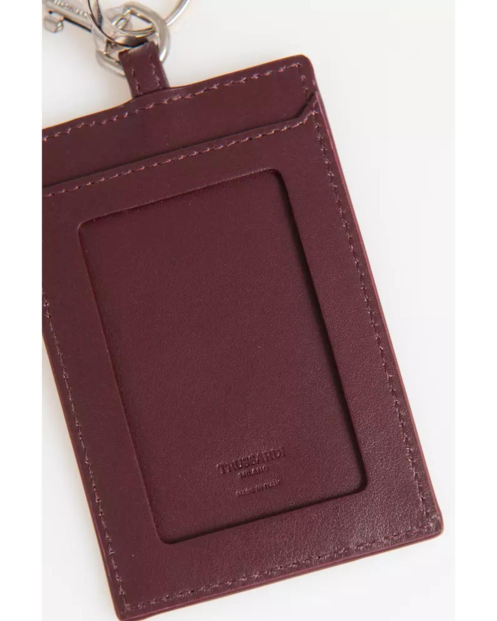Leather Badge Holder with Hammered Detailing and Shiny Key Ring One Size Men