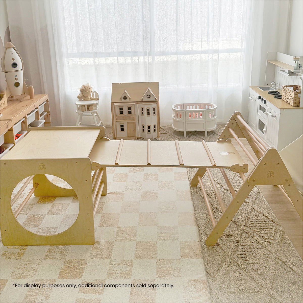 Engage in an exciting hands-on adventure with our Pikler Climbing Frame Package, featuring a Slide, Arch, and Cube. Suitable for ages 3 years and above, this package is crafted to promote both fun and early developmental growth. Each element in the package passes Australian Standards for safety, withstanding even the most rigorous play sessions. The climbing frame is a great tool for motor skill development, encouraging little ones to climb, slide and explore in a safe and controlled environment. Constructed from premium Birch Plywood and Beechwood, this package promises both durability and a natural aesthetic that seamlessly integrates into your living space. Elevate playtime and foster your child's physical and cognitive development with our Pikler Climbing Frame Package.