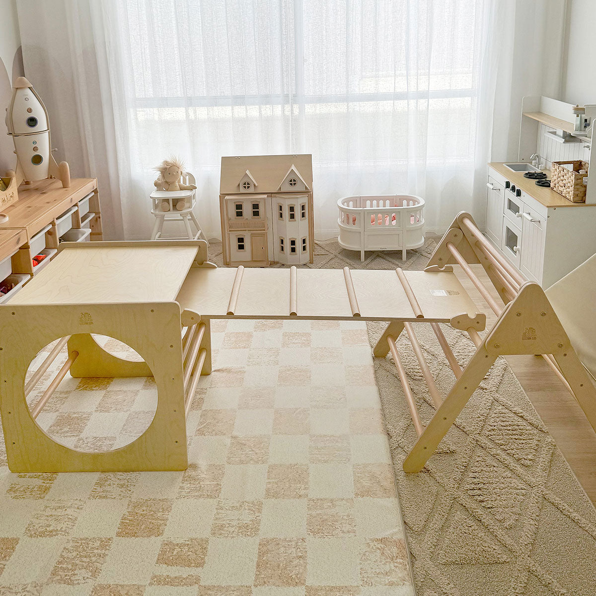 Engage in an exciting hands-on adventure with our Pikler Climbing Frame Package, featuring a Slide, Triangle, and Cube. Suitable for ages 3 years and above, this package is crafted to promote both fun and early developmental growth. Each element in the package passes Australian Standards for safety, withstanding even the most rigorous play sessions. The climbing frame is a great tool for motor skill development, encouraging little ones to climb, slide and explore in a safe and controlled environment. Constructed from premium Birch Plywood and Beechwood, this package promises both durability and a natural aesthetic that seamlessly integrates into your living space. Elevate playtime and foster your child's physical and cognitive development with our Pikler Climbing Frame Package.