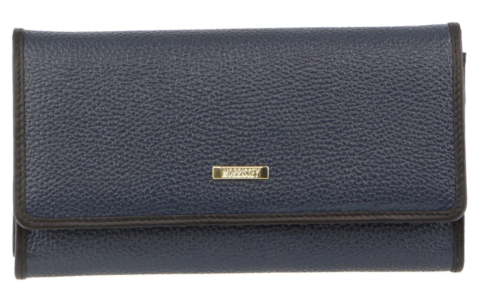 Morrissey Italian Structured Leather Flap Over Ladies Wallet - Navy