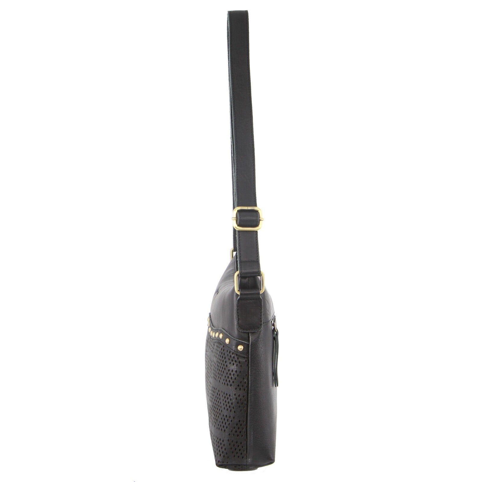 Pierre Cardin Womens Leather Perforated Cross-Body Bag with stud Detailing - Black