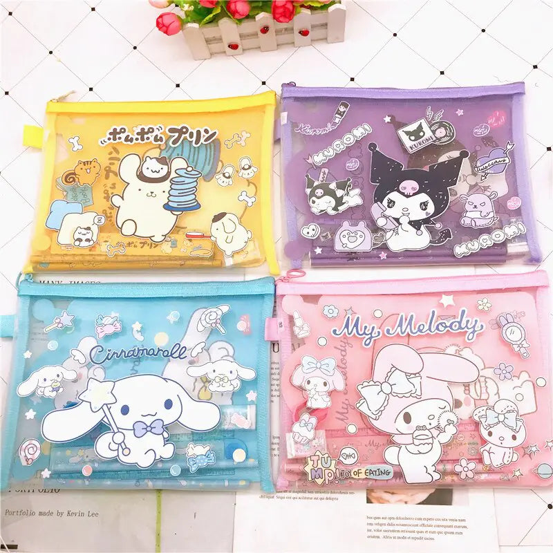 What makes this stationery set truly special is its dedication to iconic Sanrio characters. Each piece is decorated with images of Kuromi’s mischievous flair, My Melody’s gentle sweetness, Cinnamoroll’s playful energy, and Pom Pom Purin’s lovable cuteness. This mix of personalities creates a collection that feels dynamic and exciting, ensuring every piece of stationery becomes a reflection of kawaii culture.
