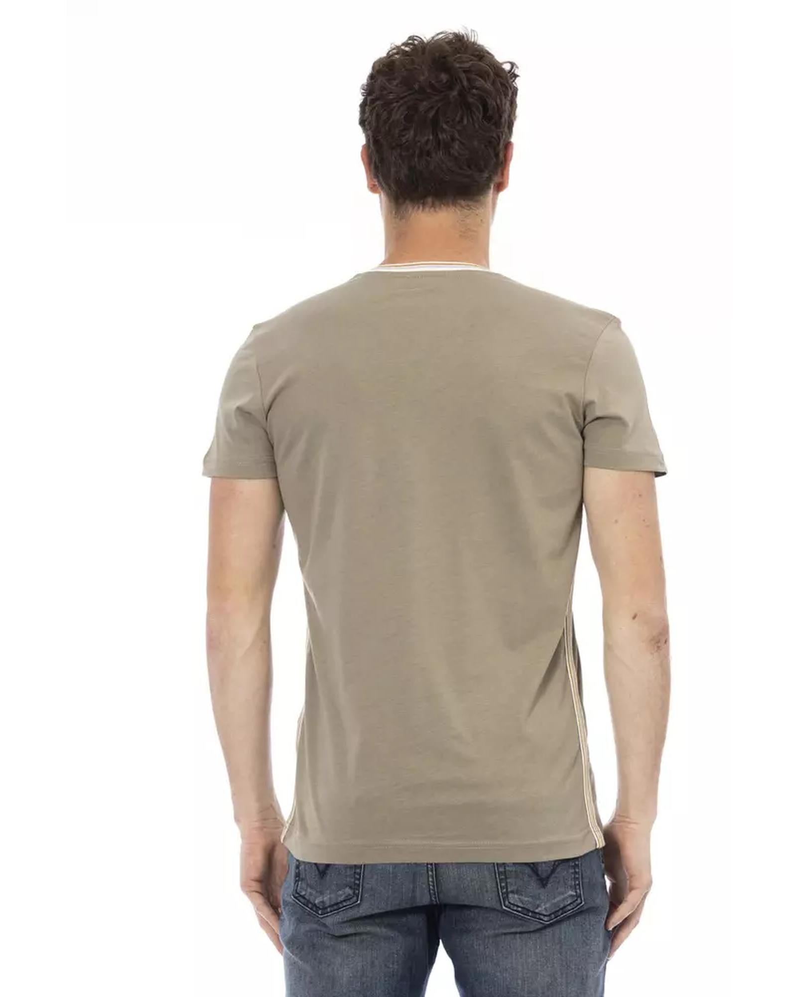 Short Sleeve T-shirt with V-neck and Front Print L Men