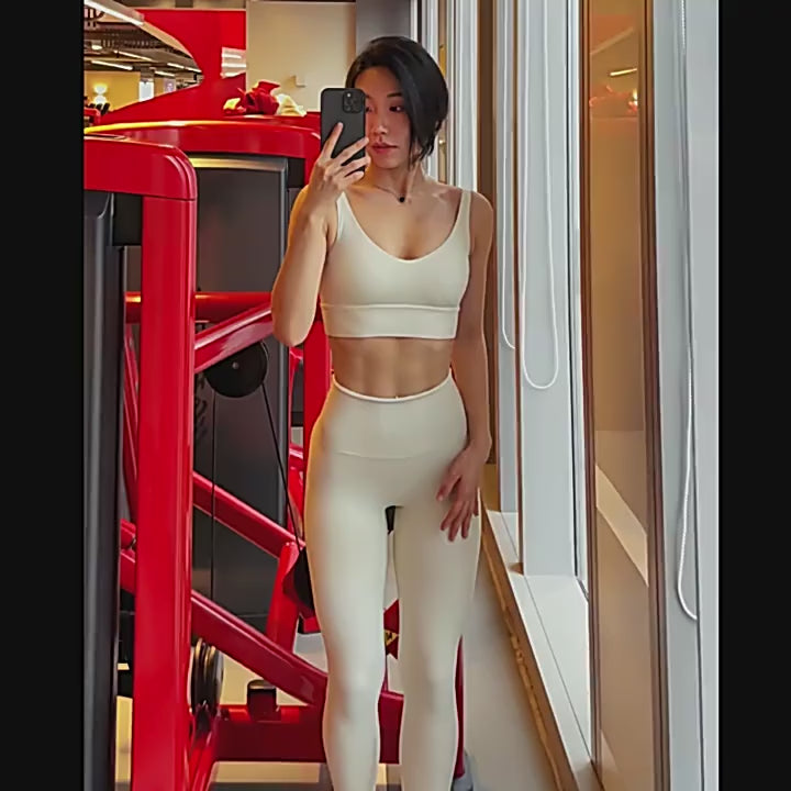 The innovative sports bra architecture showcases advanced support engineering that provides customizable comfort through removable chest padding while delivering the technical foundation essential for confident athletic expression across gym environments, studio settings, and outdoor training venues. This performance-oriented design execution ensures optimal support customization with strategic padding placement, adjustable comfort levels, and confidence-building coverage while maintaining the technical integrity that distinguishes premium athletic support wear from basic sports bra alternatives. The professional support design philosophy creates unlimited performance possibilities while contributing to the technical appeal that transcends casual activewear, making this set a reliable performance enhancement centerpiece that amplifies rather than restricts your athletic capabilities with support authenticity and design excellence that supports serious training dedication and competitive athletic lifestyle integration with customizable sophistication.