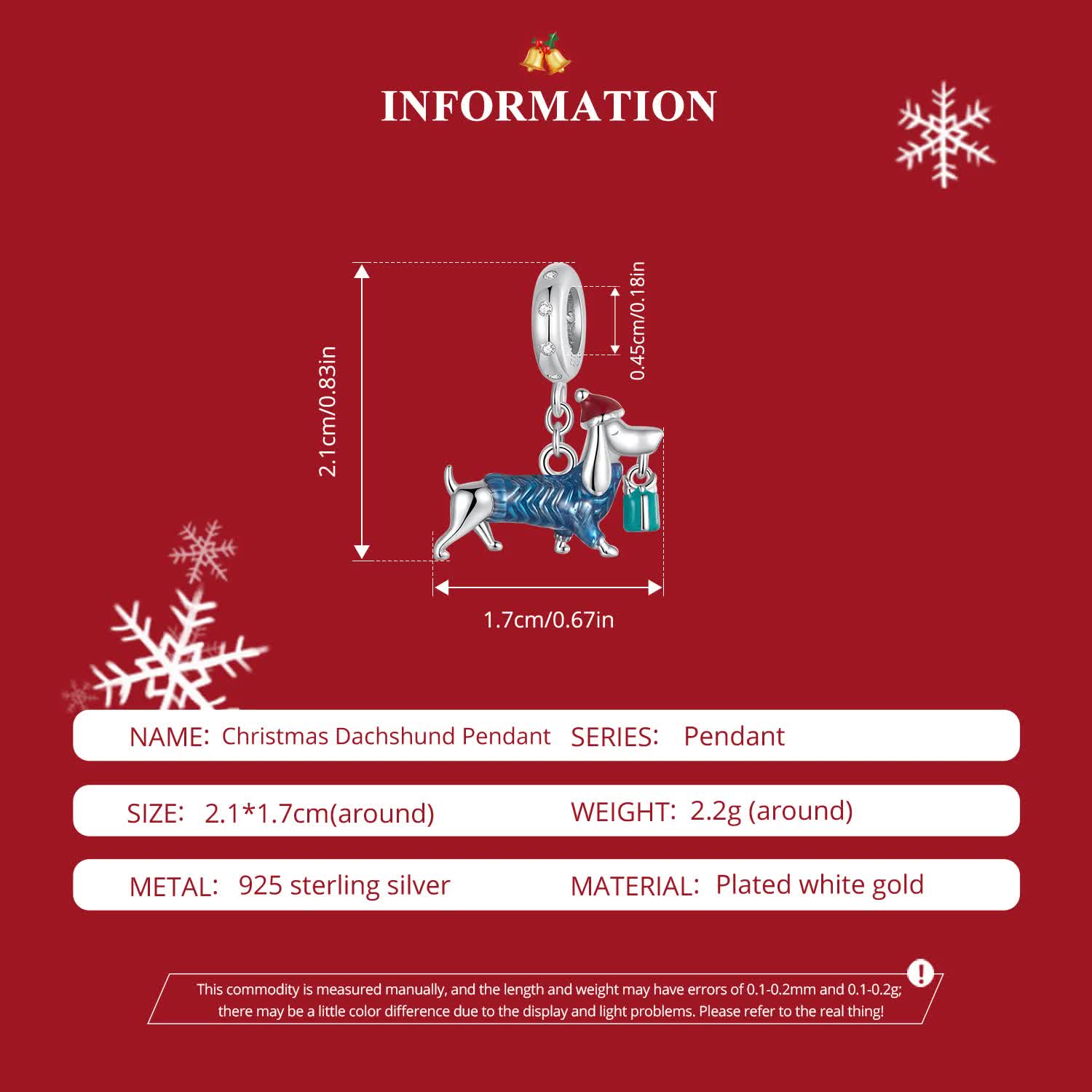 Sterling Silver Dachshund Charm - Festive Christmas Pendant with Colorful Accents(weighs approximately 2.2g)