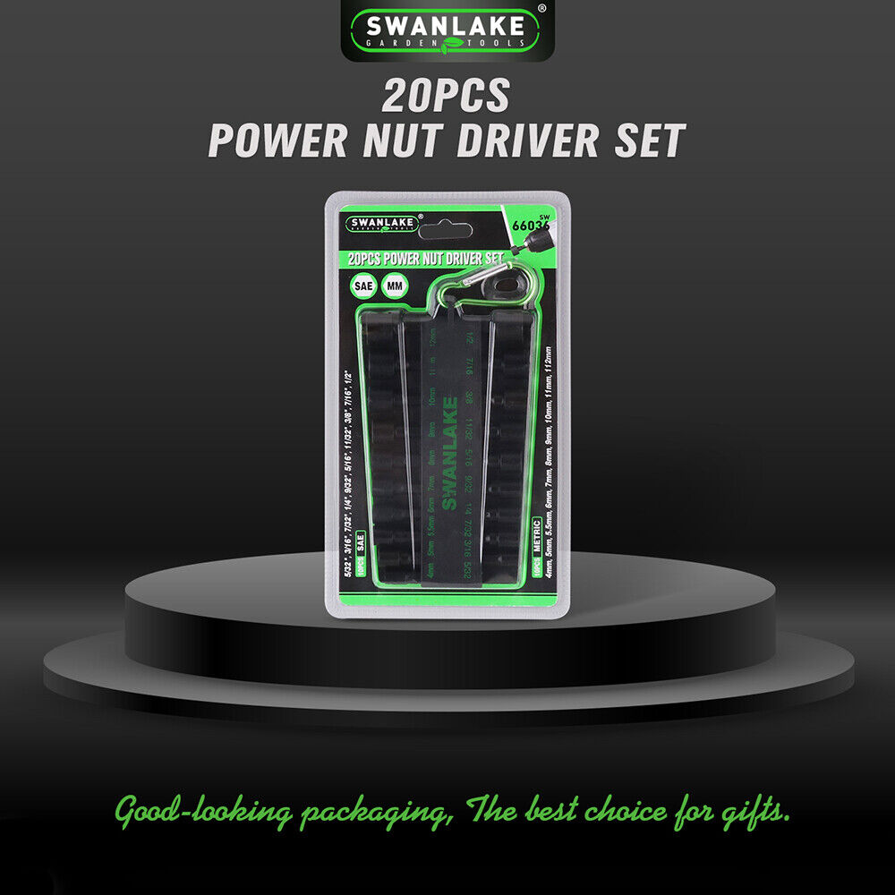 Swanlake 20Pcs Garden Tools Power Nut Driver Set Impact Drill SAE and Metric(will be no tracking)