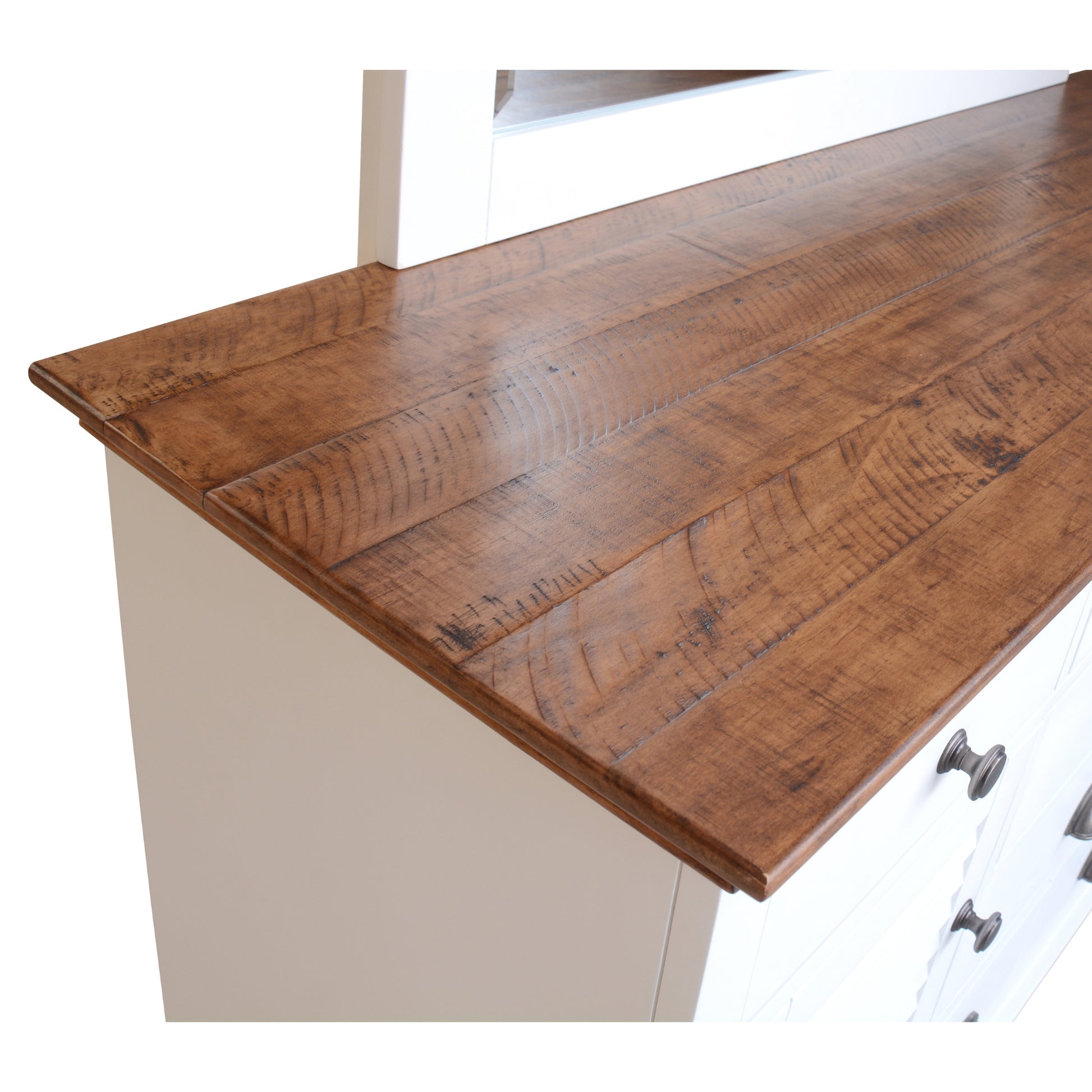 - Brown rustic top and white painted base