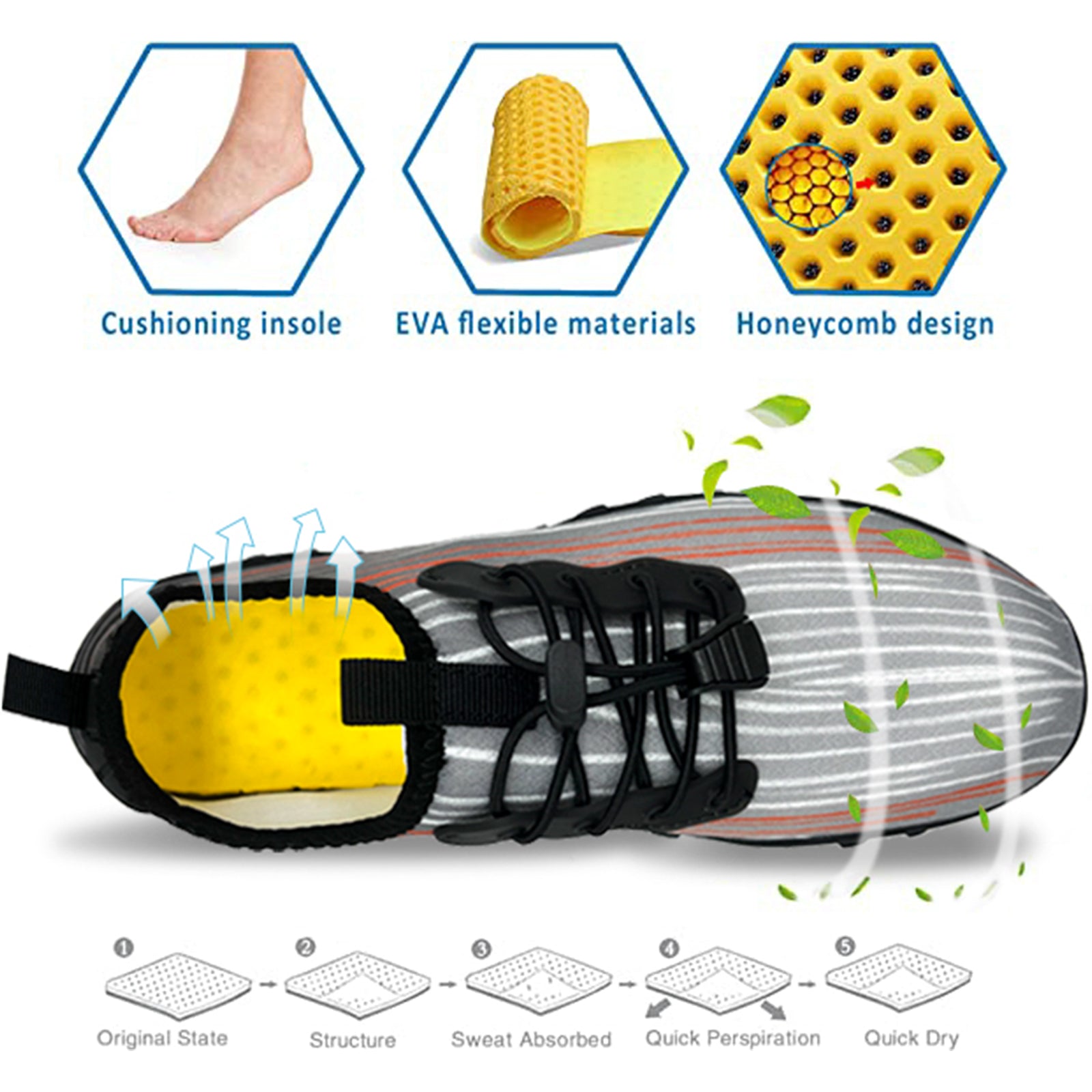 Experience unparalleled comfort with these grey water shoes specifically engineered for extended wear in and around water. The stretch soft breathable fabric upper embraces your foot with a sock-like fit that prevents rubbing and irritation even during prolonged use. This airy, skin-friendly material maintains optimal foot temperature and comfort across various activities and environments, ensuring you can focus on enjoying your water adventures rather than worrying about foot discomfort.
