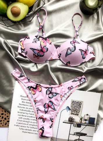 Women's Butterfly Print Bikini With Hard Cup Support