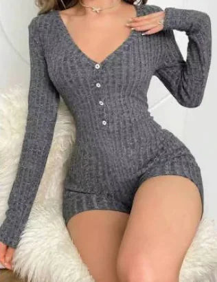 The Casual Slim Women’s Rib-Knitted Jumpsuit offers a stylish and comfortable fit. Made from soft, stretchy fabric, it hugs your curves perfectly—great for any casual occasion!