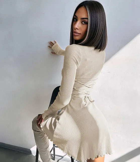 Embrace the perfect combination of minimalist elegance and everyday comfort with this thoughtfully designed lace-up waist dress. Add this versatile piece to your wardrobe and experience the confidence that comes from wearing something beautifully crafted for modern living.