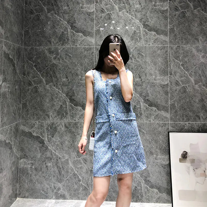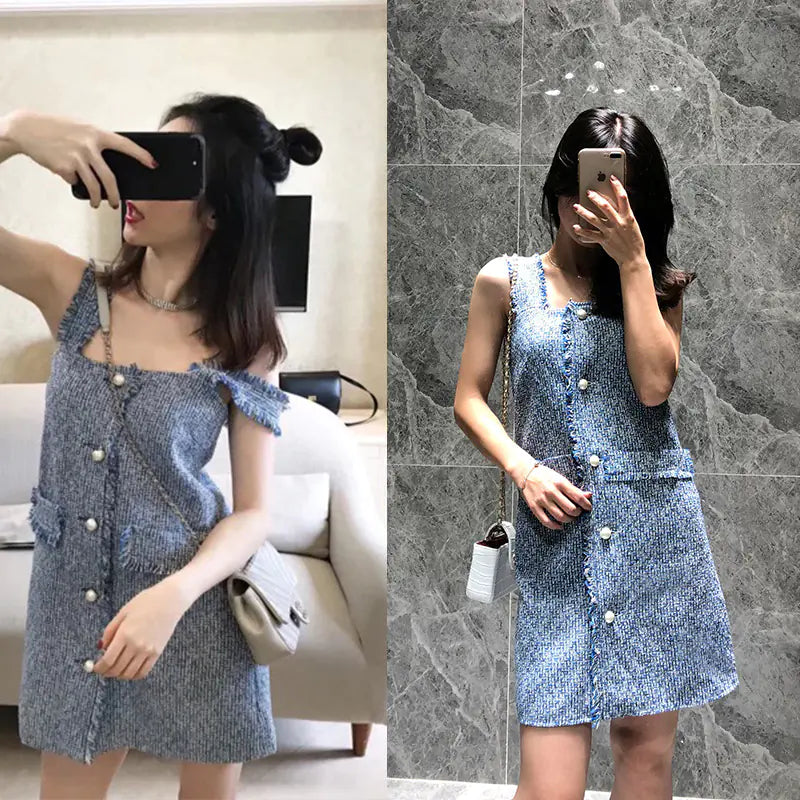Crafted from a soft and breathable **cotton-blended fabric**, this dress is your ultimate companion for staying comfortable on warm days. The blend ensures excellent breathability, allowing your skin to stay cool and fresh even as temperatures rise. The fabric's gentle texture feels wonderful against your skin, making it ideal for all-day wear. The dress boasts a chic **straight neckline** that provides a clean, modern frame for your décolletage, offering a flattering and versatile look that can be accessorized easily. As a sleeveless, strap dress, it maximizes comfort and freedom, making it an essential piece for all your summer outings, from casual brunches to vibrant evening events.