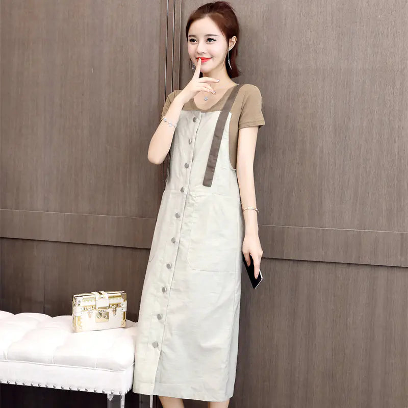 Designed for relaxed elegance, this dress features a comfortable **round neck** and a chic **sleeveless, strap (suspender) style**. This open design is perfect for warmer days or for layering over a fitted long-sleeve top during cooler weather, making it surprisingly versatile across seasons. The **relaxed and soft-fitting silhouette** ensures maximum comfort and freedom of movement, allowing the dress to drape beautifully without clinging. This fit is ideal for those who prefer an easy-going style that doesn't compromise on a polished appearance. Its unstated length, appearing to be midi or knee-length, offers a modern and adaptable hemline suitable for various casual occasions.