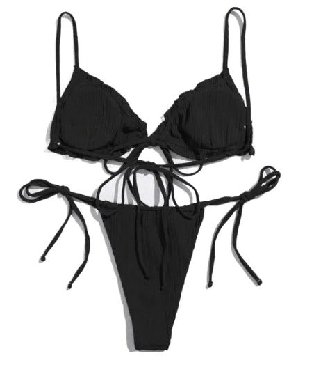 Every aspect of the Women's Tied Solid Color Design Bikini Set has been carefully considered to enhance both its aesthetic appeal and functional performance. The tie closures not only serve as adjustable fitting mechanisms but also contribute to the design's visual interest, creating elegant lines that frame your silhouette. These purposeful elements allow you to customize the fit according to your activity level and comfort preferences.