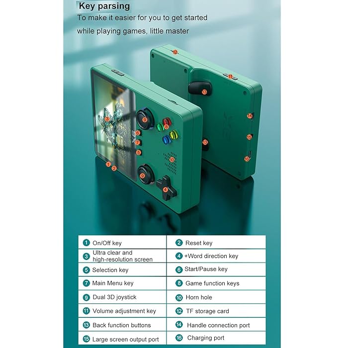The X6 Handheld Gaming Console is a versatile gaming device designed for retro and modern gaming enthusiasts. Featuring a 3.5-inch HD color screen with a resolution of 640x480, this console provides an immersive gaming experience. Its dual joysticks enhance control, making it perfect for arcade and platform games.